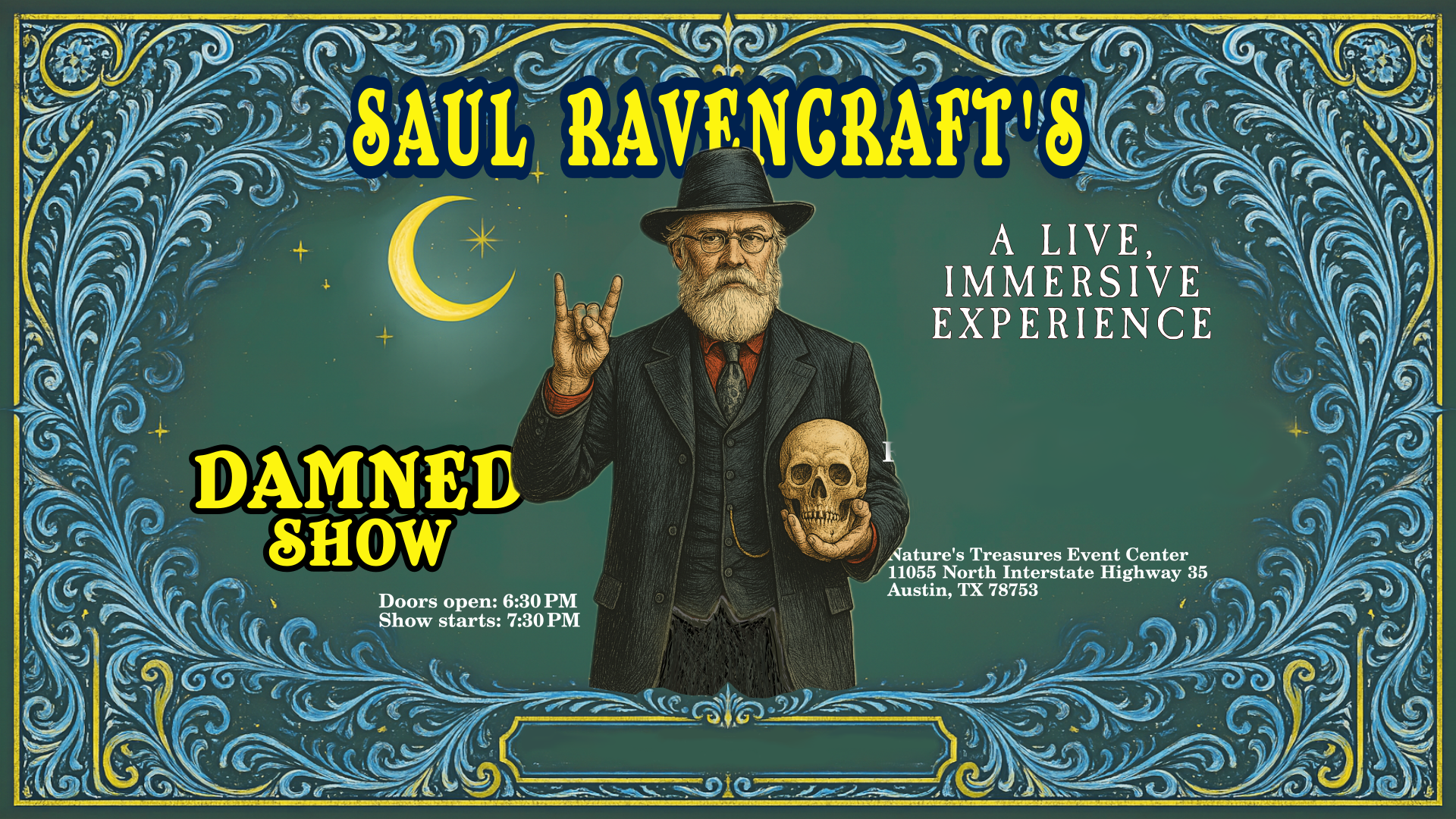 Hosted by Saul Ravencraft, Austin’s own wizard provocateur, the night unfolds like a shroud.